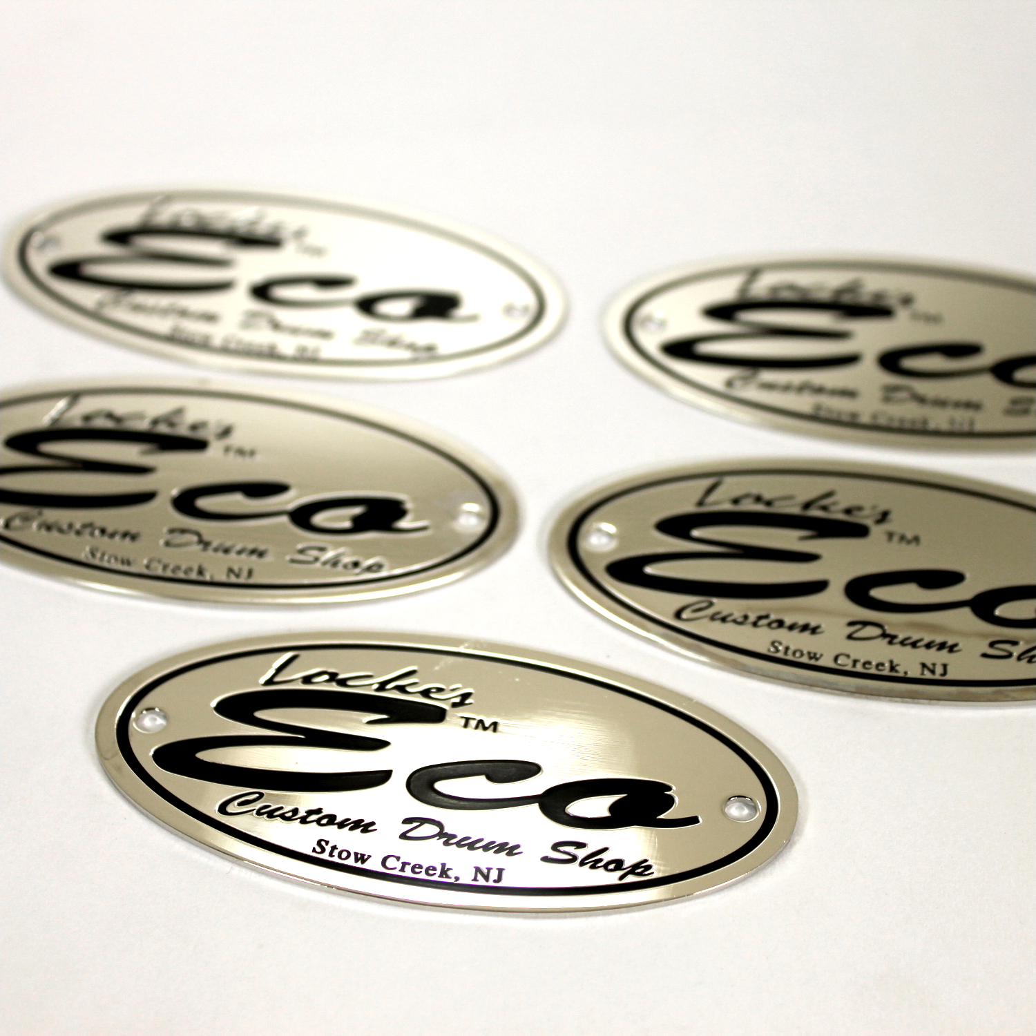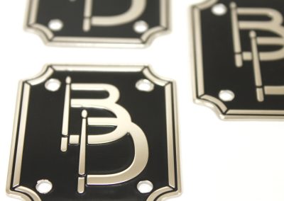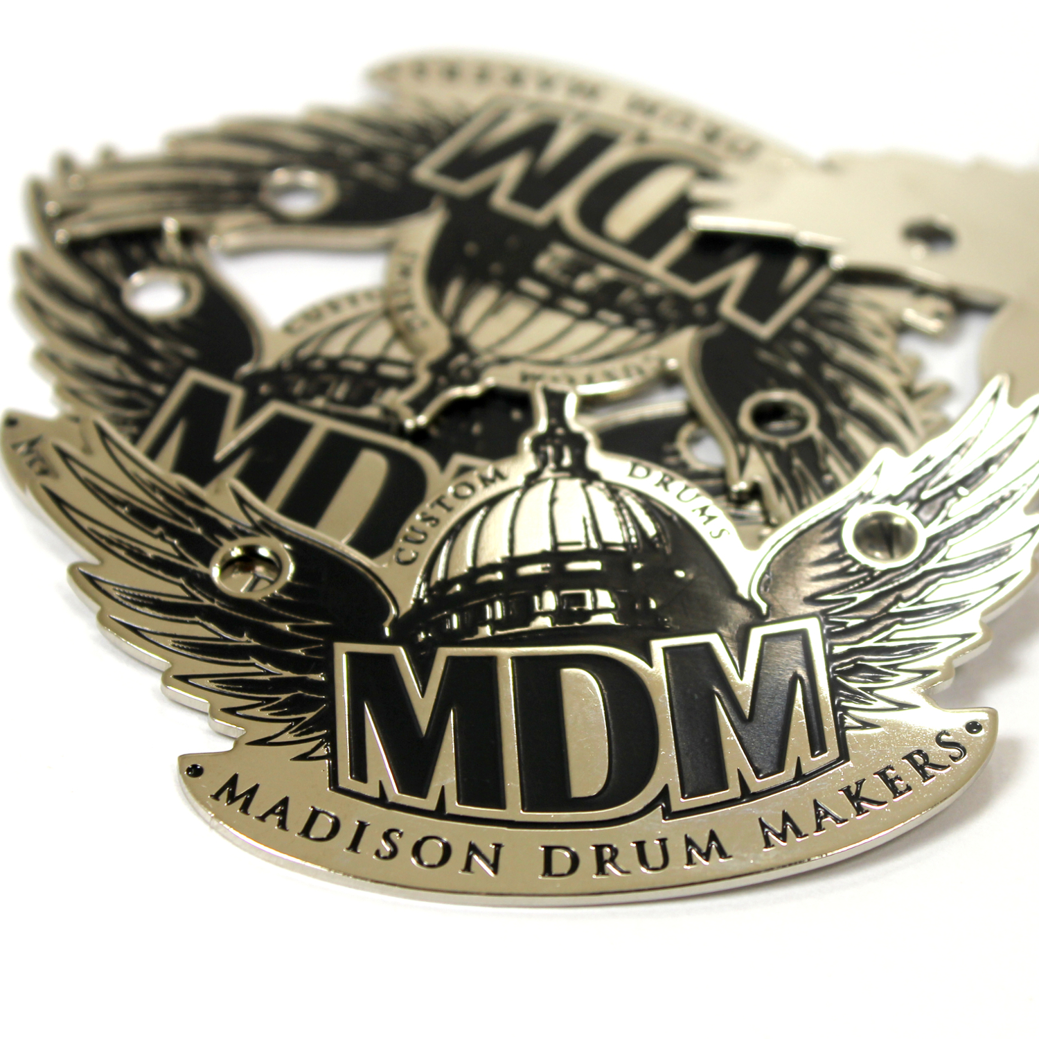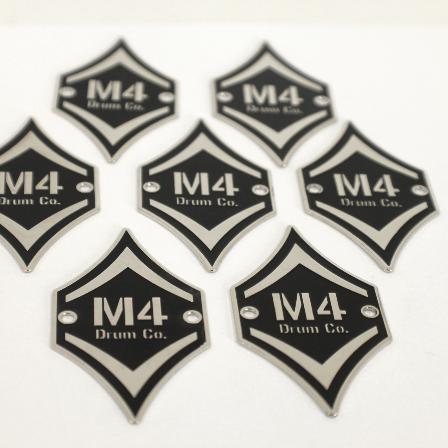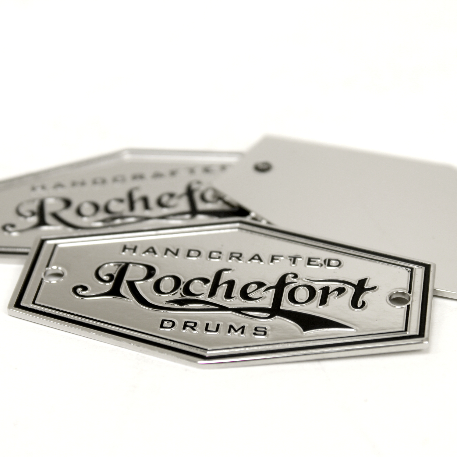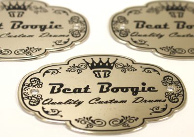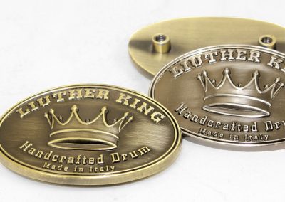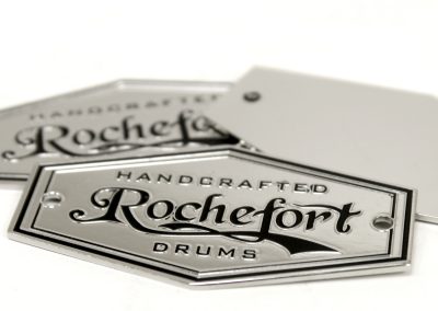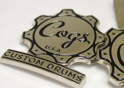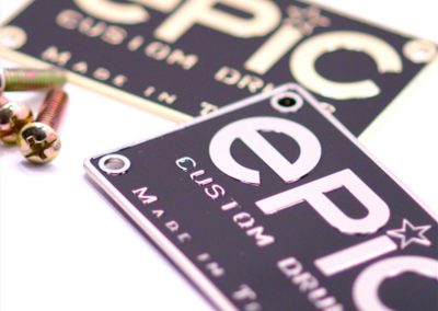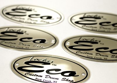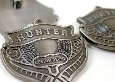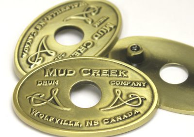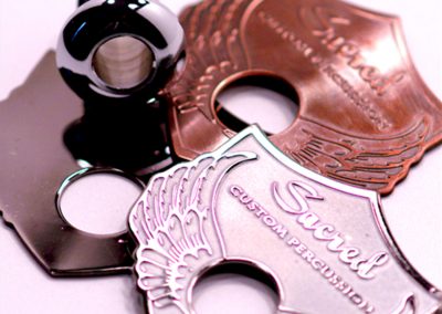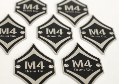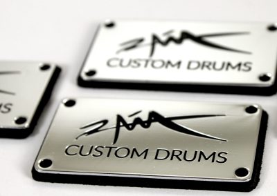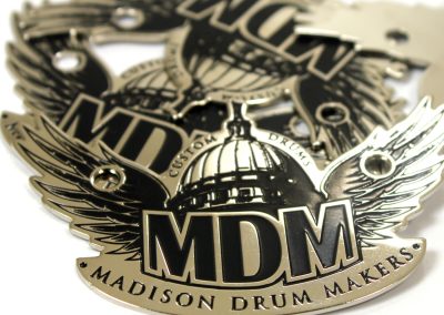 We specialize in crafting super high quality metal badges for boutique and custom drum companies, but we can fabricate badges and name plates for any product or industry! Each badge is 100% custom made to your specifications with only a 30 piece minimum.