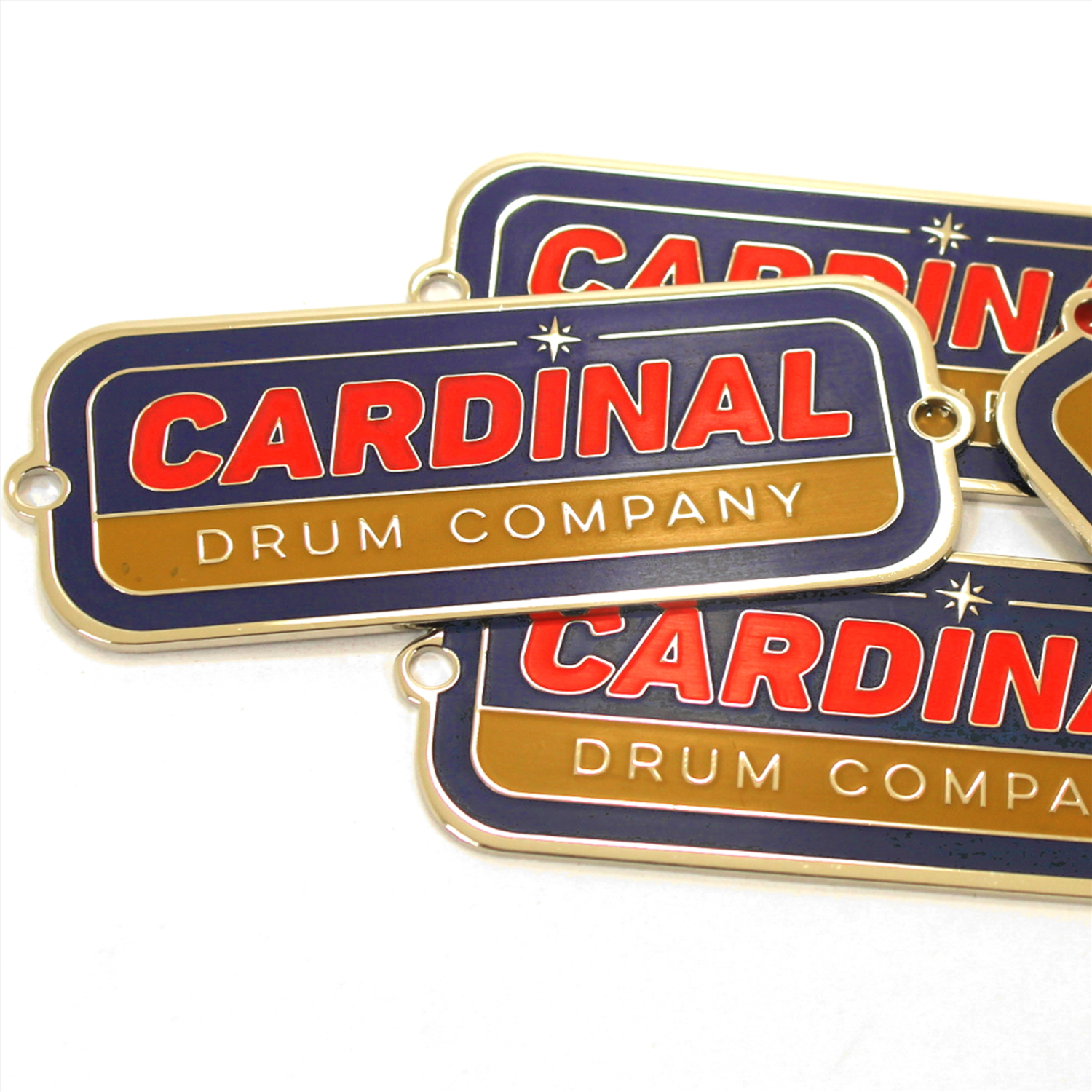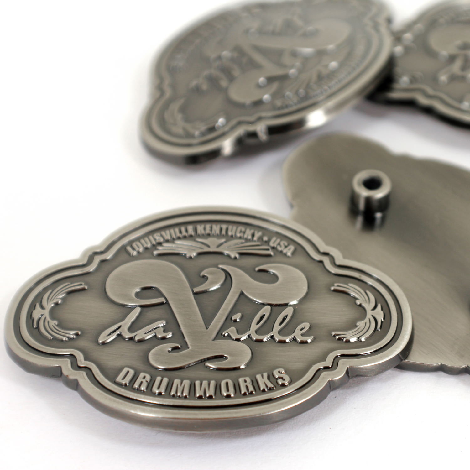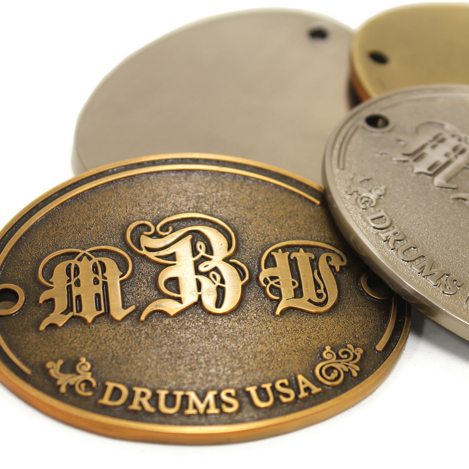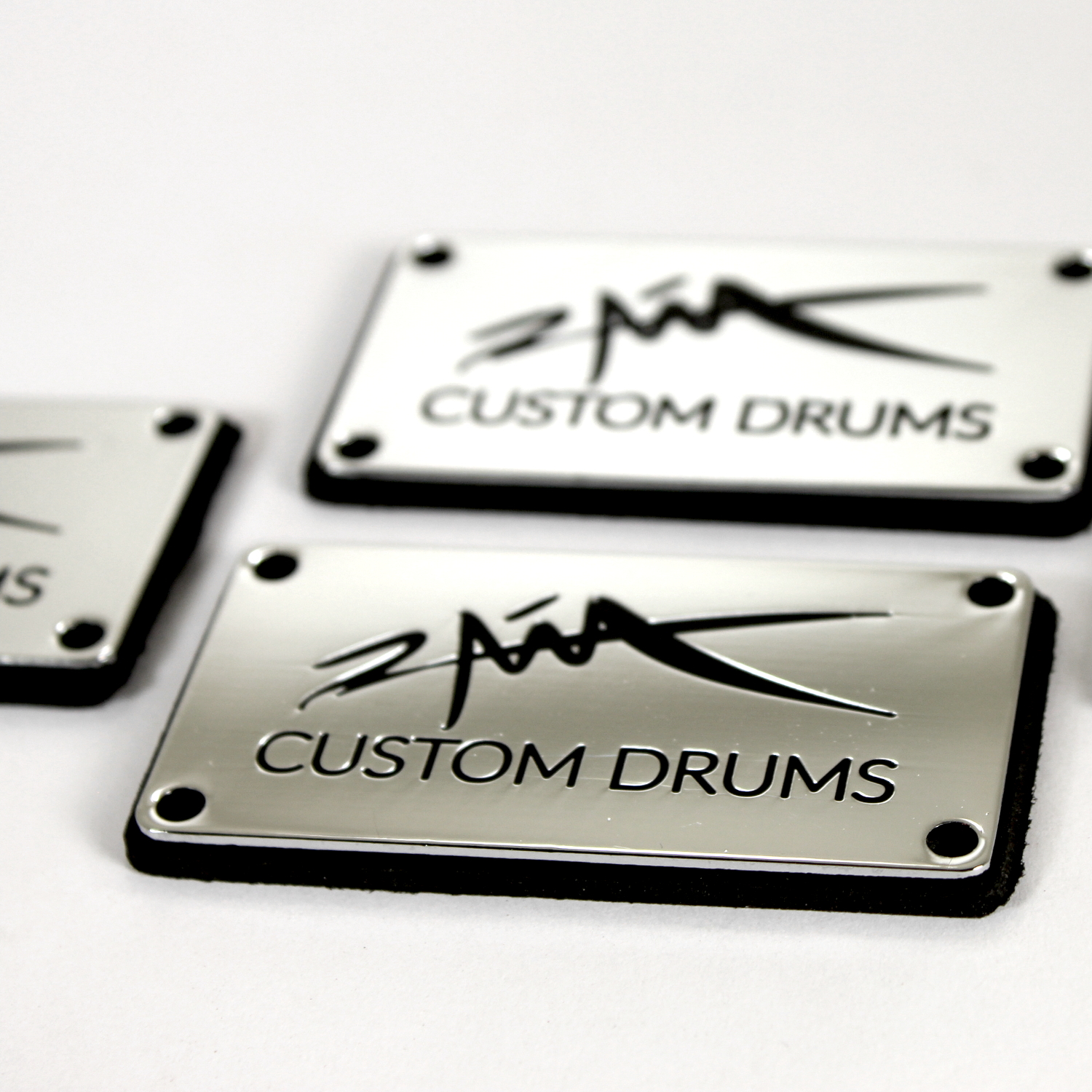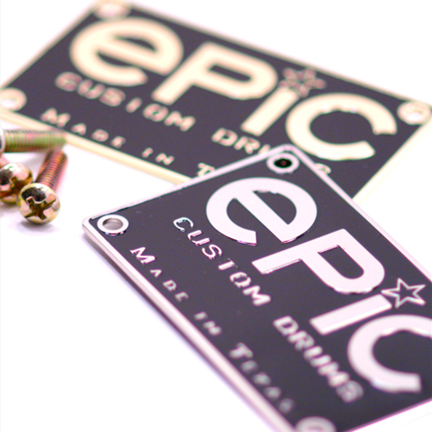 We specialize in crafting super high quality metal badges for boutique and custom drum companies, but we can fabricate badges and name plates for any product or industry! Each badge is 100% custom made to your specifications with only a 30 piece minimum.