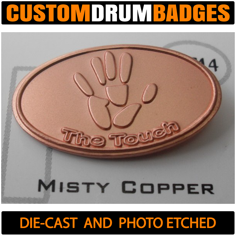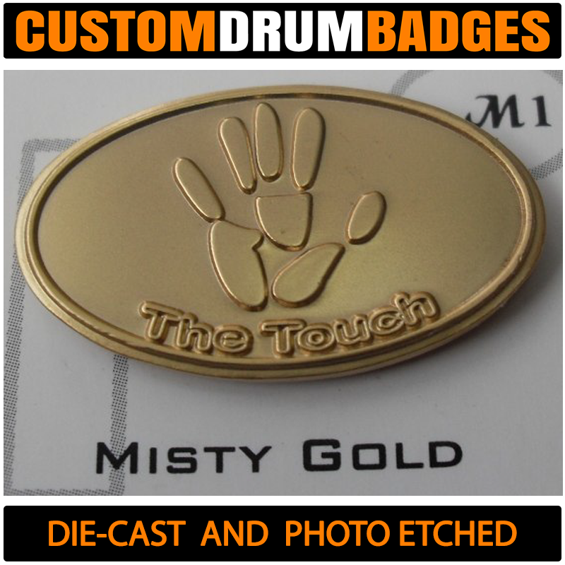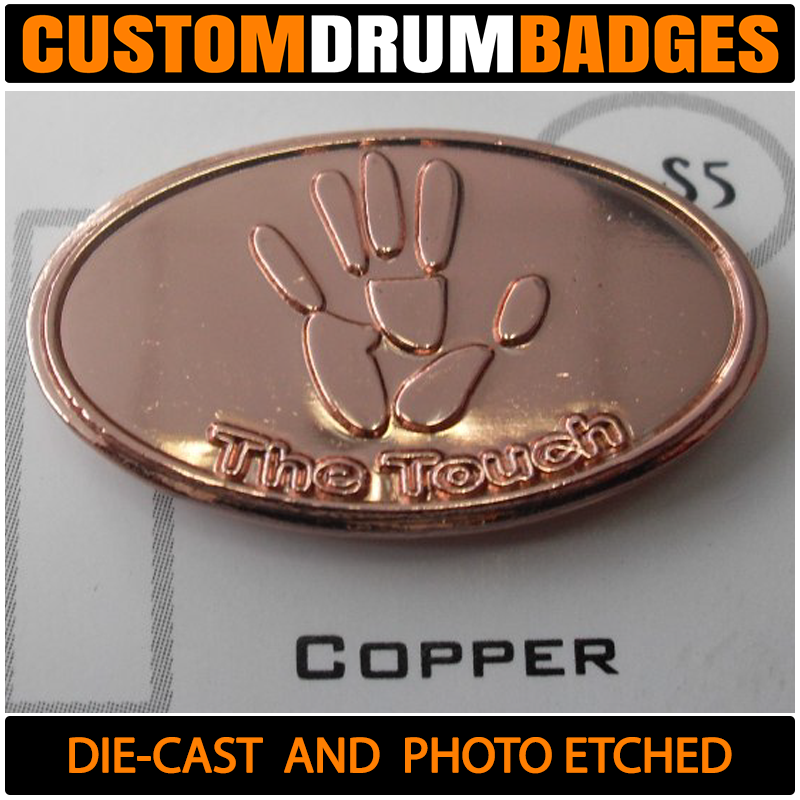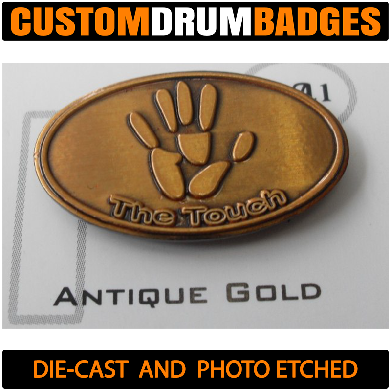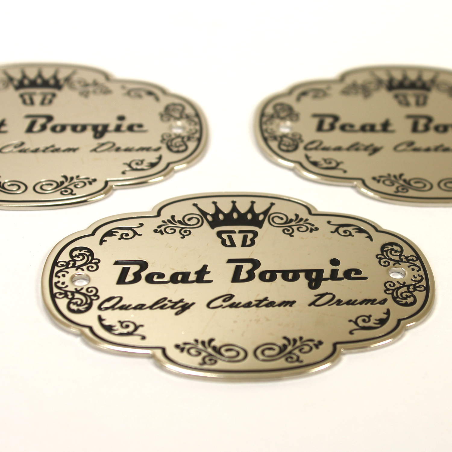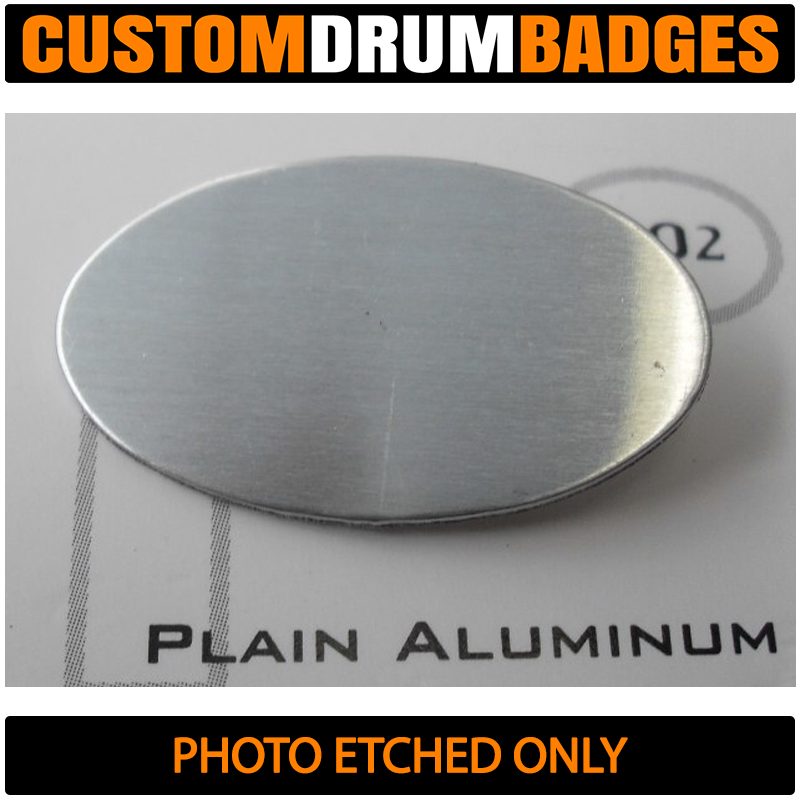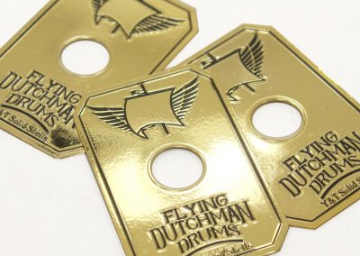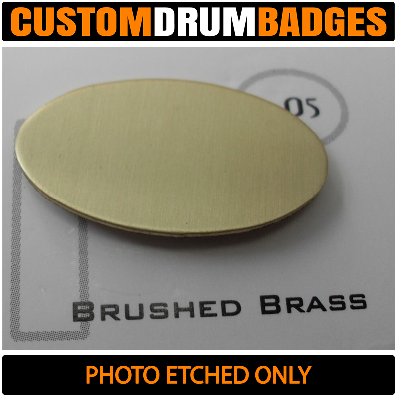 Looking for a badge like the ones used by DW, Pearl and TAMA? Then these will get you there! Crafted from 1mm brass, these are just thin enough to be bent to the curvature of the drum shell for easy mounting or you can choose a slim .08mm for extra bend-ability if you like. You can also get these fabricated with plain metal (without finishes) such as plain brass, plain aluminum and stainless steel.
