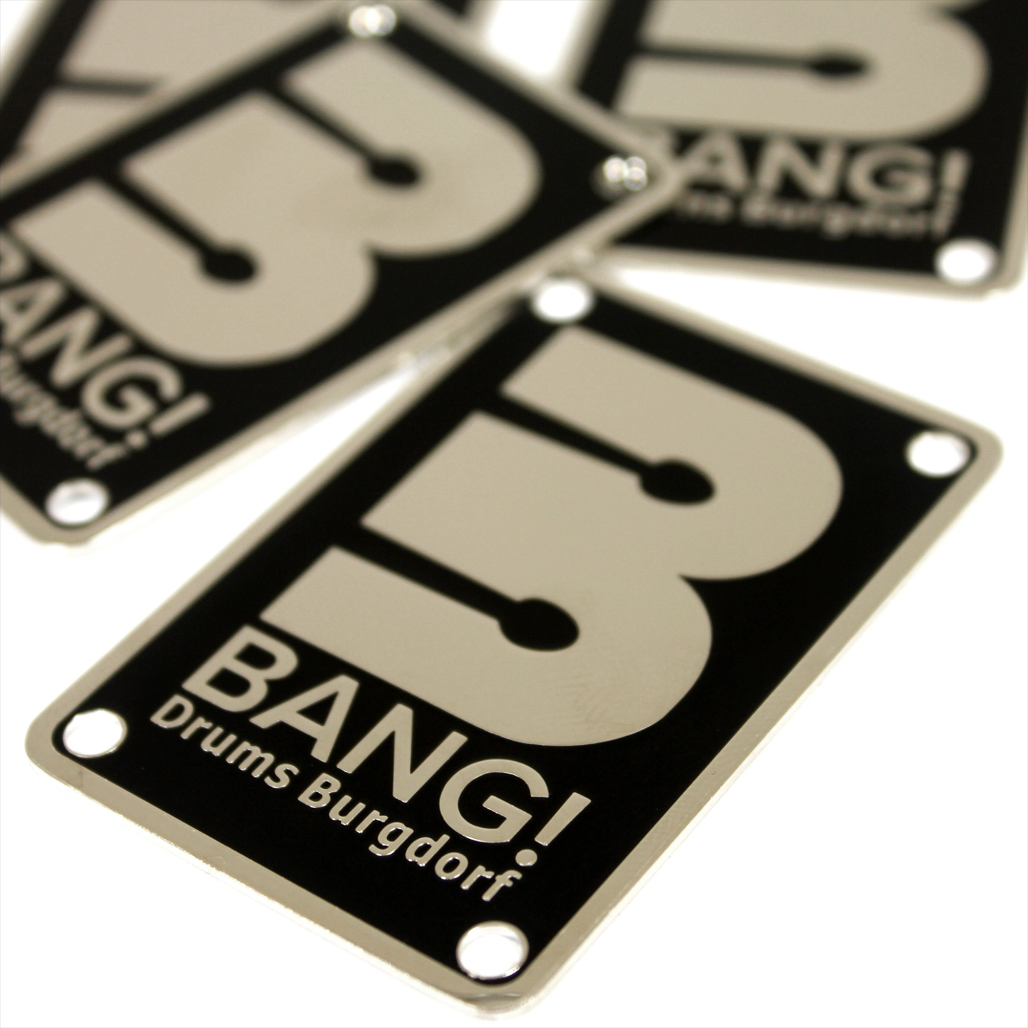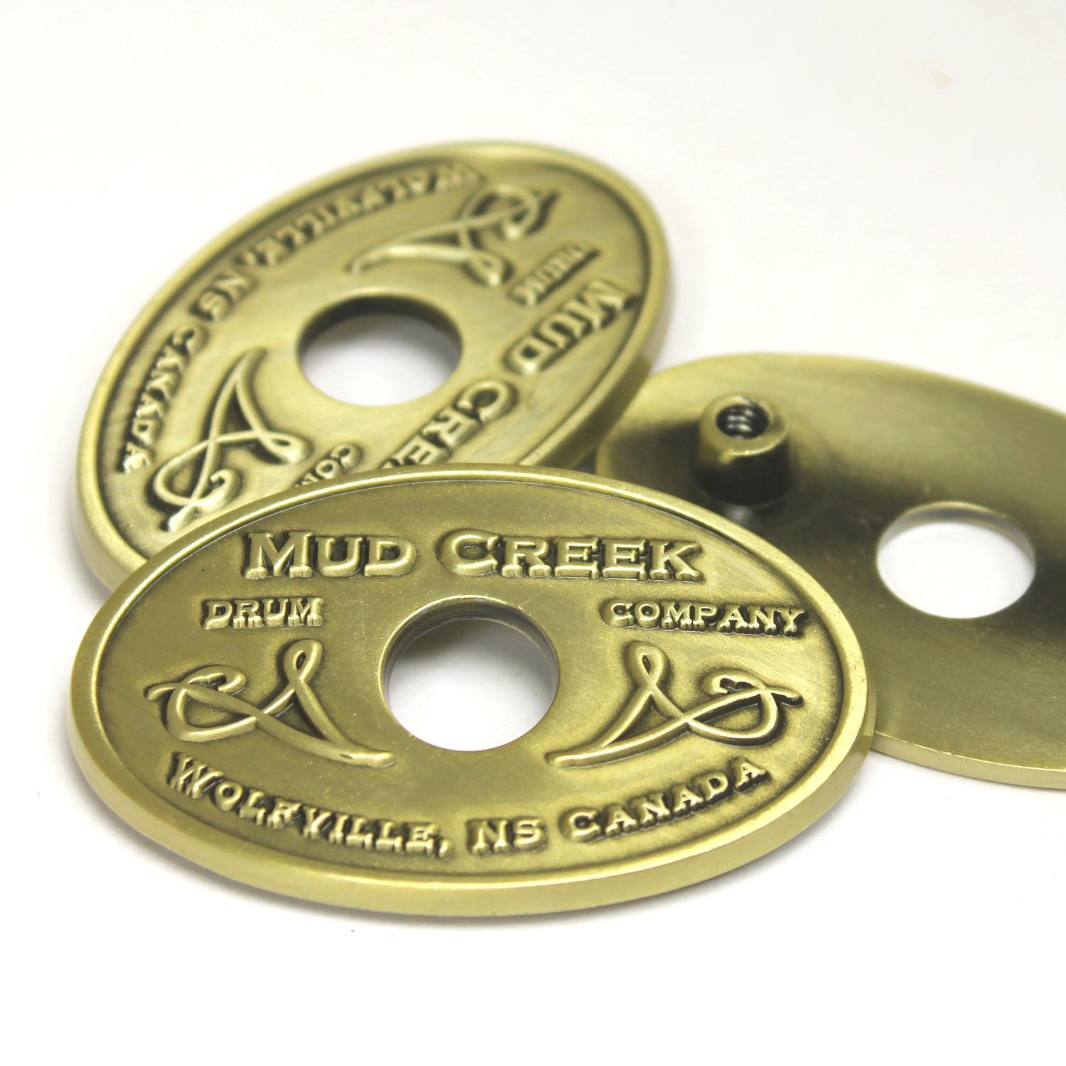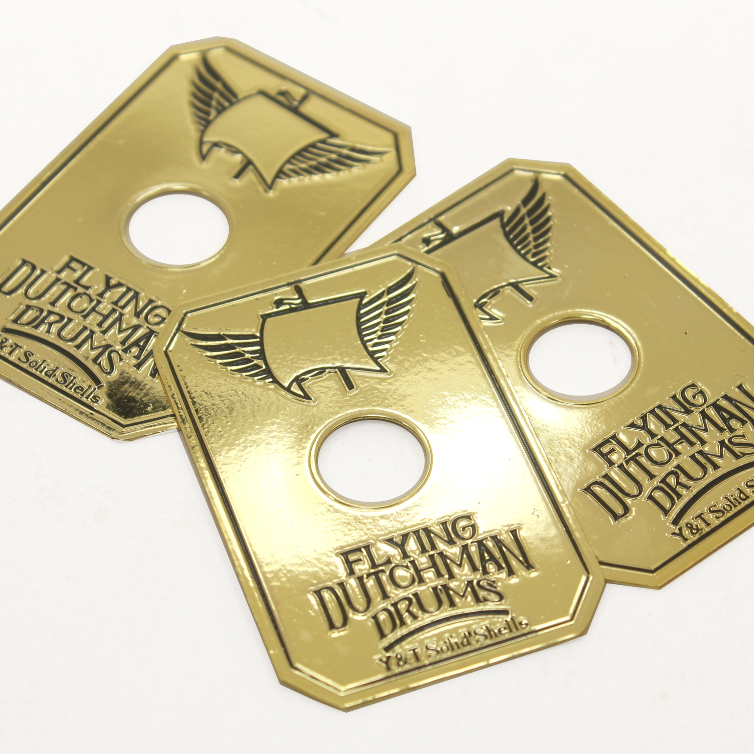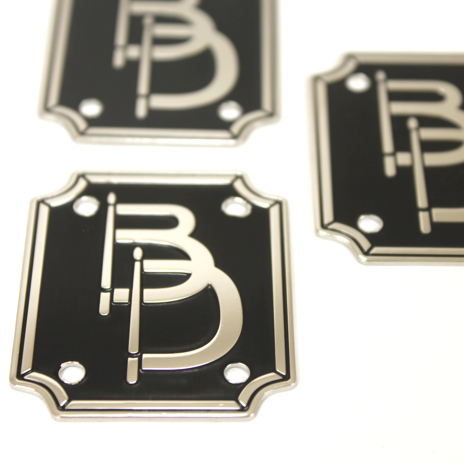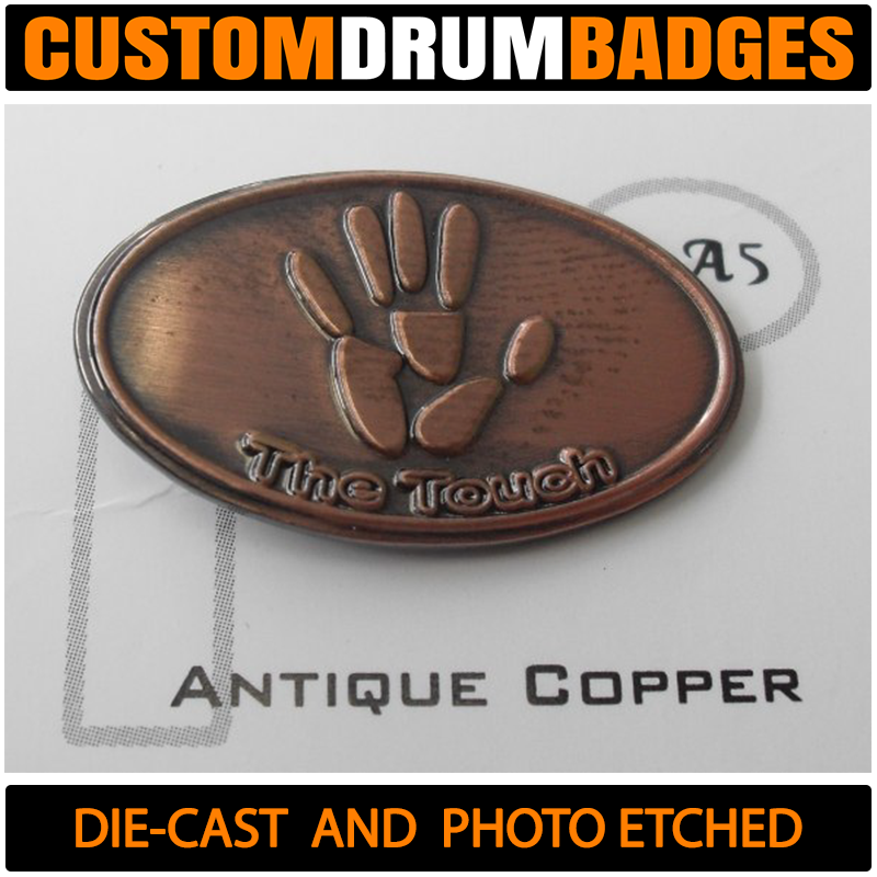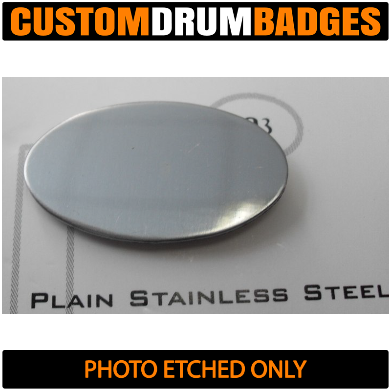 Looking for a badge like the ones used by DW, Pearl and TAMA? Then these will get you there! Crafted from 1mm brass, these are just thin enough to be bent to the curvature of the drum shell for easy mounting or you can choose a slim .08mm for extra bend-ability if you like. You can also get these fabricated with plain metal (without finishes) such as plain brass, plain aluminum and stainless steel.