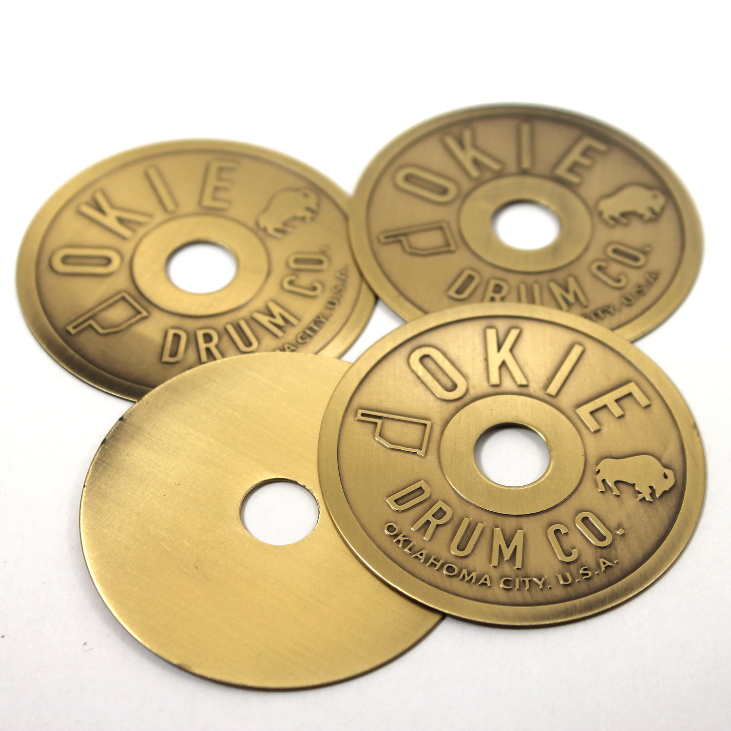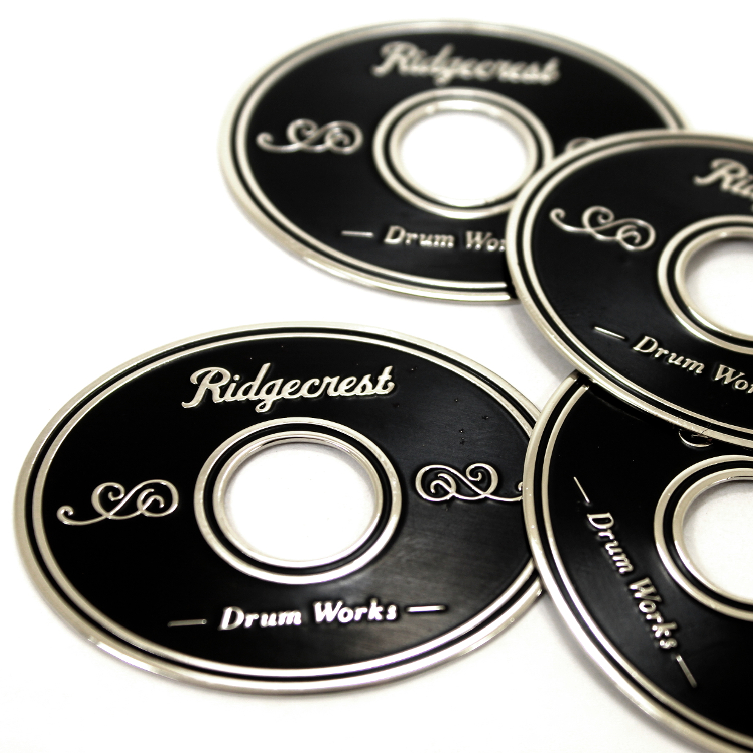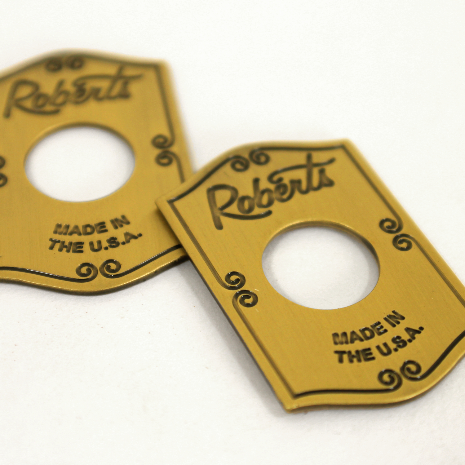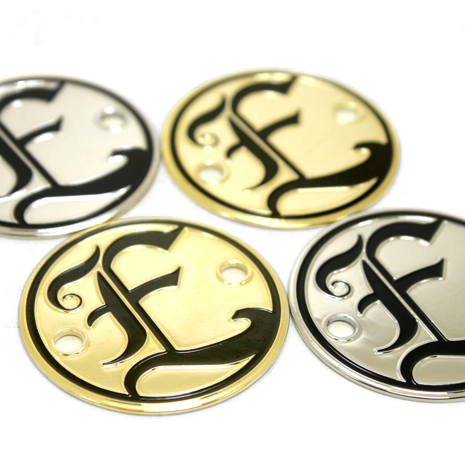 Looking for a badge like the ones used by DW, Pearl and TAMA? Then these will get you there! Crafted from 1mm brass, these are just thin enough to be bent to the curvature of the drum shell for easy mounting or you can choose a slim .08mm for extra bend-ability if you like. You can also get these fabricated with plain metal (without finishes) such as plain brass, plain aluminum and stainless steel.