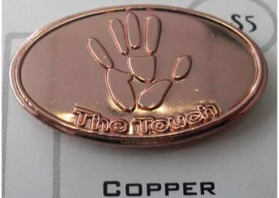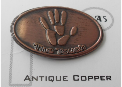 Etched, Shiny Nickle and Copper Finishes, Raised Graphics, Textured Background