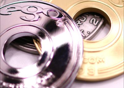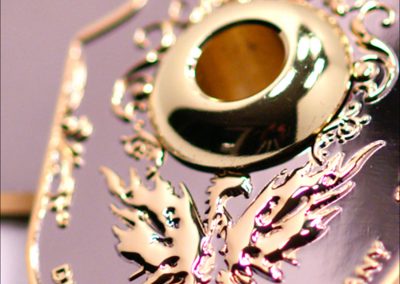 For the ultimate look and finish, our Die-Cast badges are the way to go! Cast from a Zinc alloy in either 2mm or 3mm thickness, each Die-Cast badge is made with a 14″ base curve, giving them a natural curve with the surface of the drum shell for precision mounting. If you want to conceal the screws inside the drum shell and free up more design space on the front of the badge, rear mounted spuds can be added to this type at no extra cost.
